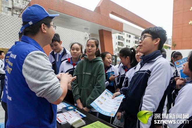 活动首日,盐田公安分局副局长徐鑫带领治安、消防、禁毒、反恐部门联动来到盐田区田东中学,将各类安全防范技巧套餐送到学生身边。