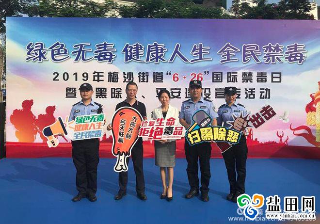 深圳新闻网讯(记者 潘峰)为深入开展“全民禁毒工程”,增强辖区居民群众禁毒意识和防毒拒毒能力,营造全民禁毒良好氛围。6月26日下午,盐田区梅沙街道在大梅沙实业股份公司门口开展以“绿色无毒,健康人生,全民禁毒”为主题的“6.26”国际禁毒日暨扫黑除恶、平安建设宣传活动。梅沙街道党工委副书记、办事处主任宋晖,梅沙派出所教导员陈宇明出席了本次活动。
