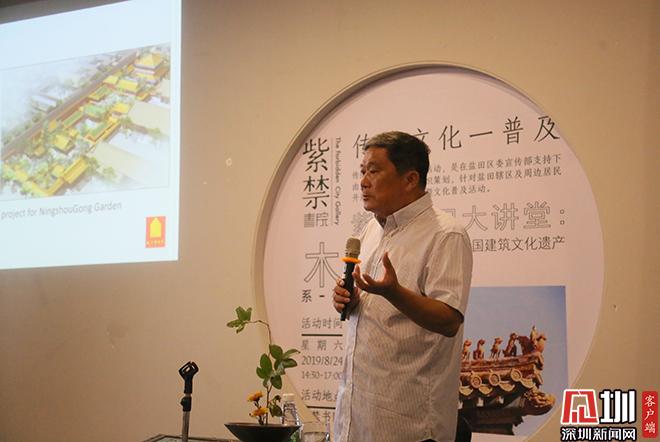见圳客户端•深圳新闻网讯(记者 潘峰)2019年8月24日,从事古建筑保护研究设计工作四十余年的故宫博物院建筑部原总工程师王时伟来到盐田紫禁书院,讲述中国古建筑保护与传承背后的故事,并带领现场观众领略中国古建筑之美。区委常委、宣传部部长董秀到场聆听讲座。