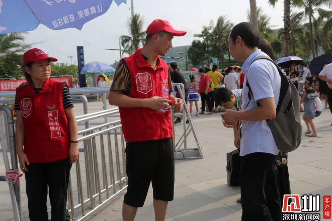 记者从总指挥室获悉,中秋节当日,大小梅沙片区安保总警力331人,其中民警62人,保安70人,辅警30人,巡防队员169人,另有义工33人。记者在大梅沙海滨公园大门前广场看到,安检口、预约处、咨询处等都严密安排执勤人员,保障景区游客安全,为游客解答疑惑,引导游客有序入园。其中,截至晚上20:00,民警共解决群众求助咨询类问题百余起,找回丢失儿童约11起。