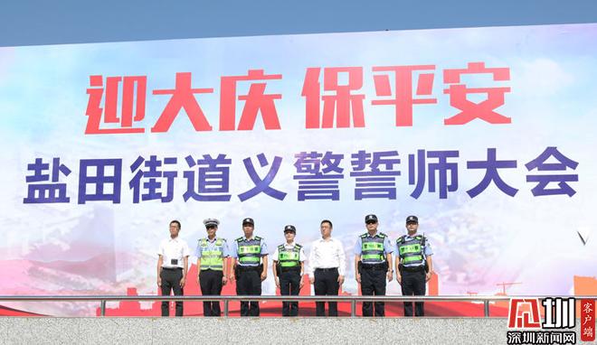 见圳客户端•深圳新闻网讯(记者 郑创彬 潘峰)为提高辖区社会面治安防控水平,充分发挥群防群治队伍作用,营造共建共治共享社会治理格局,确保中华人民共和国成立70周年大庆盐田街道辖区社会治安持续稳定,9月21日,盐田街道在盐港中学举行“迎大庆•保平安”义警誓师大会。上千名义警代表整齐列队,郑重地表明为百姓守护平安的决心和信心。记者了解到,这支由各行各业组建成的上千人义警队伍,将参与区域巡查、隐患排查、纠纷调解、交通疏导、宣传引导、便民服务等工作,共同守护美好家园。