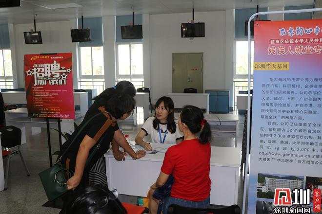 见圳客户端•深圳新闻网讯(记者 邓雪婷)2019年9月25日,由盐田区民政局(残联)主办的盐田区残疾人就业专场招聘会在盐田区人力资源大楼二楼招聘大厅举行,来自辖区的华大基因、德邦物流、京基海湾大酒店等20余家招聘单位,提供包括实验员、文员、电子商务等50余个岗位,助力残障人士更好地融入社会,解决残障人士求职难的问题,招聘会吸引了上百名残疾人积极应聘。