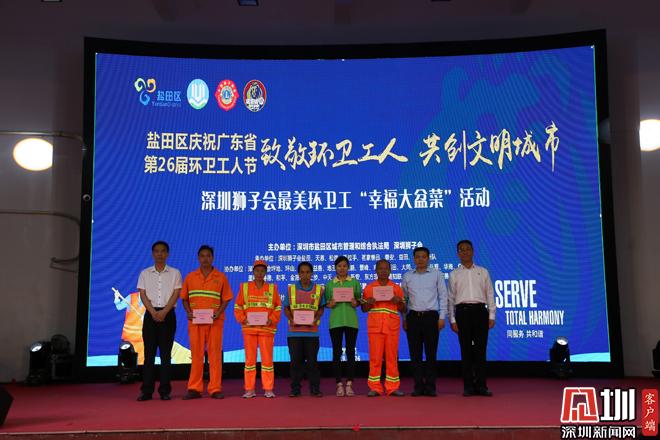 见圳客户端•深圳新闻网讯(记者 邓雪婷)为庆祝广东省第26届环卫工人节和深圳市第3个“关爱环卫工人日”,发动全社会关爱环卫工人,大力倡导保护盐田环境和垃圾不落地的文明生活方式,2019年10月26日,盐田区城管和综合执法局携手深圳狮子会在盐田区沿港社区篮球场举办“致敬环卫工人 共创文明城市”幸福大盆菜活动,500名环卫工人齐聚一堂,共同品尝大盆菜,观看慰问演出。区委常委雷卫华参加活动并向环卫工人发放慰问品及慰问金。