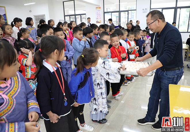 在凌云县开展对口扶贫工作期间,盐田区委书记陈清一行还考察了凌云县后龙村中心小学及后龙村幼儿园,这两所学校的孩子们也成了“蛋奶营养工程”的受惠群体。除了凌云县的“蛋奶营养工程”外,该企业还另拨付100万元爱心款,用于广西百色市乐业县花坪镇中心小学重建及宿舍楼建设。