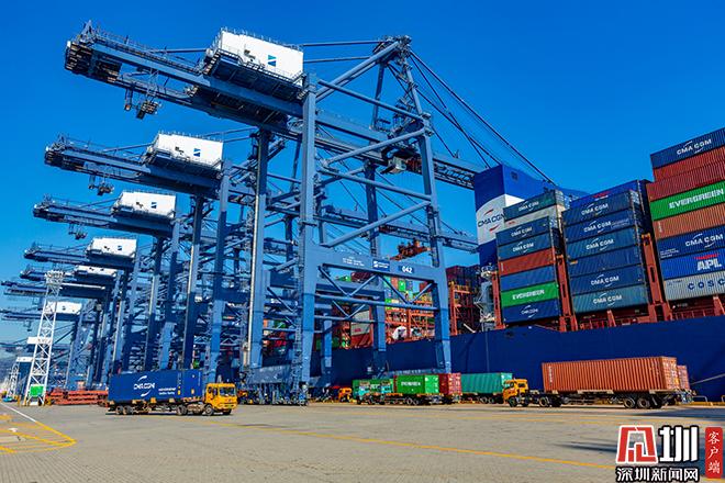 在盐田港区,伫立着高大壮观的蓝色钢铁巨人,犹如变形金刚般,长长的胳膊伸向蔚蓝大海,忙碌地抓起或放下五颜六色的集装箱。这忙碌的“变形金刚”,就是港口用来装卸集装箱的专用机械——岸吊。