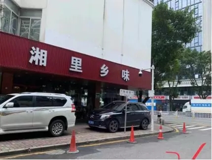 巡查问题:和田街湘里乡味,车辆违停人行道、商家占用机动车道用作停车位。