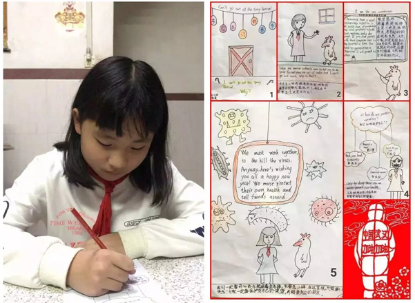 五(6)中队的徐曼同学通过绘本让更多的小朋友了解新型冠状病毒感染的肺炎。