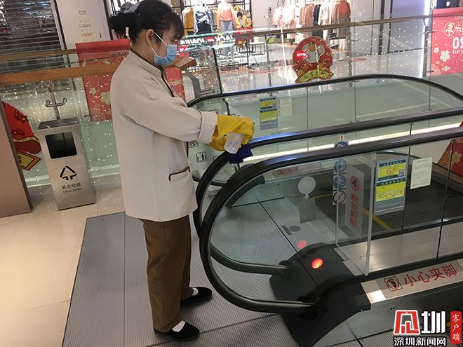 记者发现,尽管人流量不及从前,但商场的疫情防控力度却大为提升。除了临时关闭掉一个出入口外,商场还安排专人值守在另外两个主要出入口处,为往来人员测量体温。在电梯旁消毒的保洁阿姨告诉记者,每天都会早于营业时间3小时到岗,一天下来,要定时多次给洗手间、电梯、垃圾桶、以及各大门把手等内外公共区域消毒。“尽管现在来逛商场的人并不多,但这弄不好就是‘人命关天’的事儿,所以大家都会严格按照要求,尽心尽力地做好这份工作。”