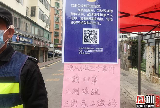 对于还未登记的市民或者刚返深的市民,该执勤人员表示,他们可现场扫描二维码,填报真实信息即可立即生成二维码。“凡是进出人员,必须同时满足三个条件:戴口罩、测体温、出示二维码,我们才放进来。”该执勤人员一边检查进出人员信息,一边向现场居民宣传。