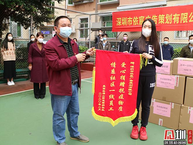 见圳客户端·深圳新闻网讯(记者 陈琳君 通讯员 叶小惠)自新冠肺炎疫情发生以来,口罩、消毒液、手套等防护用品一度脱销,一线工作人员也时常面临防护物资短缺的难题。2020年2月12日上午,深圳市依宸广告策划有限公司为海山街道梧桐社区工作站送来消毒液、口罩等防疫物资一批,并向持续战斗在抗疫一线的基层社区工作人员致敬。