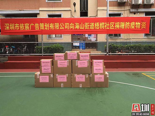 见圳客户端·深圳新闻网讯(记者 陈琳君 通讯员 叶小惠)自新冠肺炎疫情发生以来,口罩、消毒液、手套等防护用品一度脱销,一线工作人员也时常面临防护物资短缺的难题。2020年2月12日上午,深圳市依宸广告策划有限公司为海山街道梧桐社区工作站送来消毒液、口罩等防疫物资一批,并向持续战斗在抗疫一线的基层社区工作人员致敬。