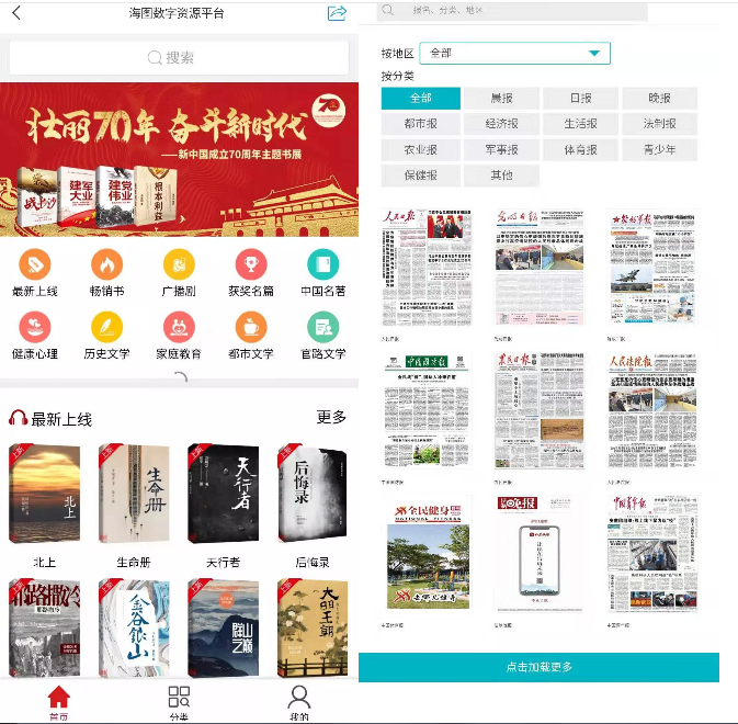 在“图书悦读”应用中,可以直接获取图书,进行阅读。不管是文学小说,还是养生知识,或是专业经典,都可以尽数拥有。在线图书可以收藏在文件夹中,也可以评论点赞、转发分享,与亲朋好友共读好书。