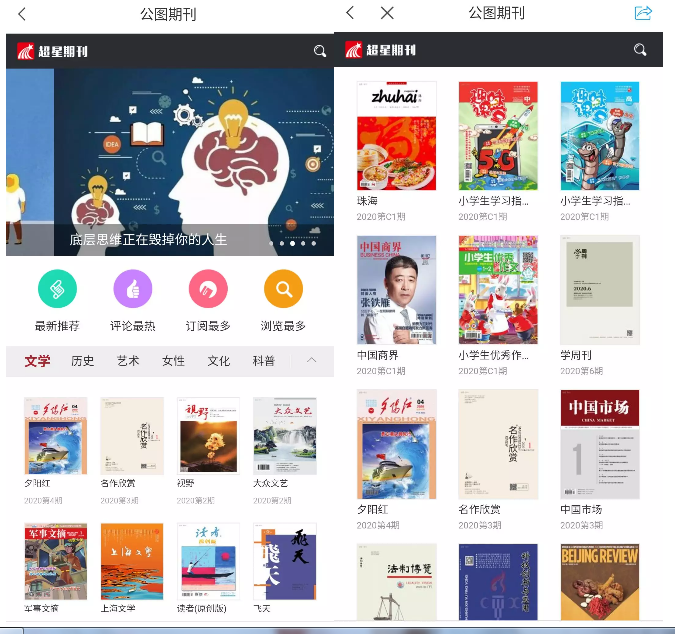 可以提供海量期刊资源,包括大众期刊与学术期刊。无需登录,只要打开“公图期刊”模块,即可获取最新内容。