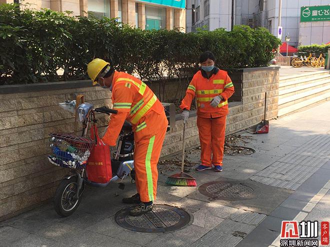 中午时分,在离自行车站点不远处的花坛旁,两名环卫工人正手持作业工具,对路面进行打扫,成片的枯枝败叶被扫成一堆,花坛里外也被仔细清理过。连日来,面对病毒的肆虐,这些城市清洁师始终坚守在平凡的岗位上,承担着扫净街道、清运垃圾的任务,为辖区清洁和疫情防控默默付出。