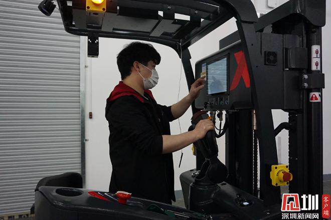 装货、搬运、入库……只要电脑远程发送搬运指令,无人叉车就可自动从指定地点叉取货物并运送至指定堆存区。在位于盐田港后方陆域普洛斯国际物流园的全国首个基于无人高位叉车系统的密集存储无人仓,平衡重式无人叉车演示了智慧搬运全流程,一旁的产品调试员则根据叉车路径不停地调试、优化,直至改造完成。