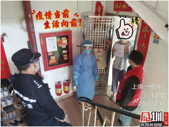 连日来,但凡接到湖北返深人员的反馈信息,“社区三人小组”都会即刻行动,到返深人员家中核查信息,给每一位返深人员测量体温、了解健康情况,落实居家隔离政策。由于穿着防护服、戴着护目镜,不少小区还需要攀爬楼梯,每一次核查完后,全副武装下的吴琼兰满头大汗,护目镜里也全是水雾。在做好本职工作的同时,吴琼兰还时刻关注着社区工作人员的自身保护,每天对社区玻璃门把手进行擦拭、消毒,给每一个外出回来的工作人员喷拭酒精,督促各防控点的工作人员戴好手套测体温。