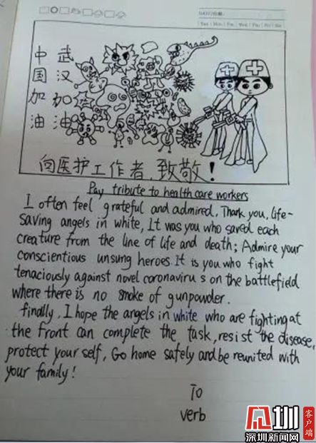 海涛小学学生以英语作文的方式向抗疫一线医务人员致敬