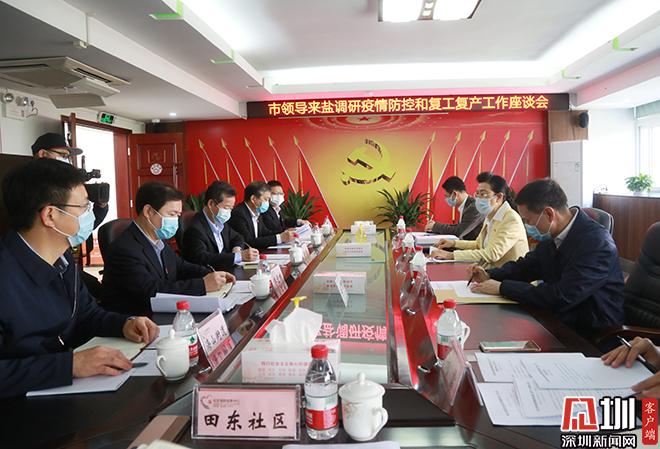 在随后召开的座谈会上,沙头角街道和海山街道主要负责人分别汇报了疫情防控和复工复产工作情况。据悉,两个街道一方面抓好疫情防控工作,一方面积极推动企业有序复工复产。截至目前,沙头角街道辖区内的460家企业已复工371家,到岗员工5584人,返岗率70%;海山街道现有企业1042家,已复工复产企业781家,其中已复工餐饮企业155家。