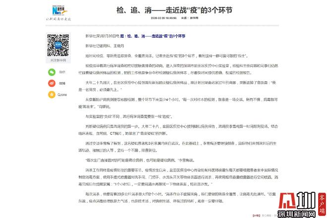 连日来,中央、省、市、区主要新闻媒体都对盐田区各条抗疫战线中的优秀部门、党组织、个人,情况进行了集中宣传报道。其中新华网以《检、追、消——走近战“疫”的3个环节》为题就盐田区疾控中心实验室工作人员战“疫”工作进行了深入报道;人民日报(客户端)登载《感动深圳100个凡人“疫”事:10则抗疫日记“泄露”他们的初心》《感动深圳100个凡人“疫”事①:没有生而英勇,只是选择无畏》;《战疫观|细节的力量:一个深圳城中村的抗疫样本》被南方+app首页刊登;《盐医付小义:主动请缨再出征责任在肩勇向前》《盐田区疾控中心:在距离病毒最近的地方执着坚守!》《梅沙街道最美“夫妻档”发挥党员“硬核”力量》等10余篇文章被“深圳发布”微信公众号转发;《深圳城中村抗疫的盐田实践:14个监测点24小时严防严查》《深圳盐田抗疫专题文艺作品快板<出门儿>》等40余条稿件被《学习强国》平台转载。