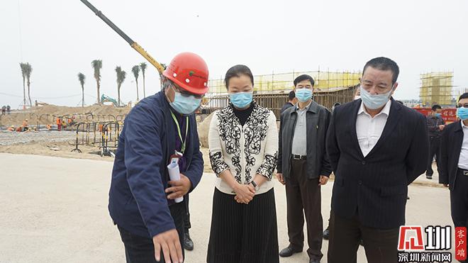 陈倩雯一行首先来到大梅沙海滨公园,详细听取了公园重建工程的疫情防控措施落实情况及复工复产情况。据了解,大梅沙海滨公园重建范围面积约20.07万平方米,其中沙滩面积11.5万平方米,海岸线长度1.5公里,项目总投资约37000万元。截至目前,该项目桩基基础累计完成约92%,主体结构累计完成约10%,园建基础累计完成约60%。记者了解到,项目已逐渐恢复工程施工,并按照相关文件要求,加强防疫措施宣传教育,执行人员进场必测制度,并对各场所开展严格消杀,确保安全有序复工复产。“当前是抗击疫情的关键时期,希望各相关单位在保证安全的前提下,有序稳步推进重建工作,将大梅沙海滨公园这张亮丽的名片擦得更亮。”陈倩雯表示。