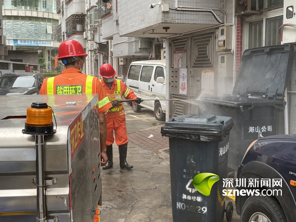 在沙头角街道官路吓村,环卫工人对城中村公共设施、公共区域进行了精细化擦洗、消毒,清理卫生死角,同时还对垃圾集中点、排污水沟等重要区域采取病媒生物防制措施,通过每周一次的消杀消毒,及时有效清除蚊、蝇、蟑、鼠等病媒生物孳生地,降低病毒污染风险,营造干净、整洁、健康的生活环境。