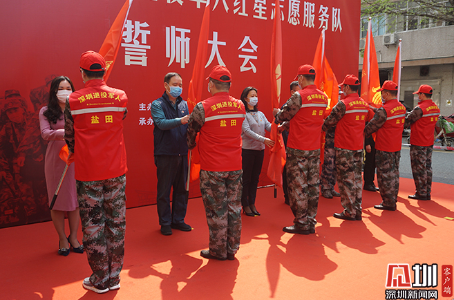 见圳客户端·深圳新闻网讯(记者 杨春丽)为传承人民军队的光荣传统和优良作风,号召退役军人积极投入疫情防控一线,2020年4月8日上午,盐田区正式揭牌成立退役军人红星志愿服务队并召开誓师大会。盐田区副区长莫熙玲参加了活动。
