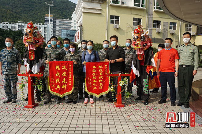 见圳客户端·深圳新闻网讯(记者 杨春丽)锣鼓喧天,醒狮欢腾!2020年4月17日下午,为欢迎盐田区沙头角民兵连生物支援保障排战疫英雄凯旋,盐田区人武部举行了一场热烈的欢迎仪式。盐田区委常委、区人武部政委常华出席。