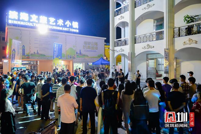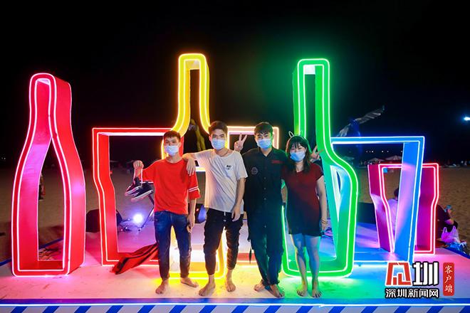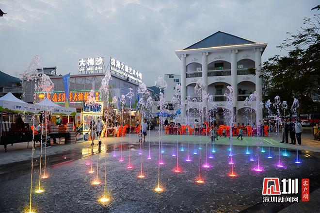 当夜幕降临,位于大梅沙滨海文旅小镇绚丽多彩的喷泉,伴随着音乐,激光闪烁,水雾升腾。小镇还因地制宜地融入了滨海特色文化,“绽放”雕塑、童趣广场、互动投影等“网红打卡点”,吸引了众多游客拍照留念。