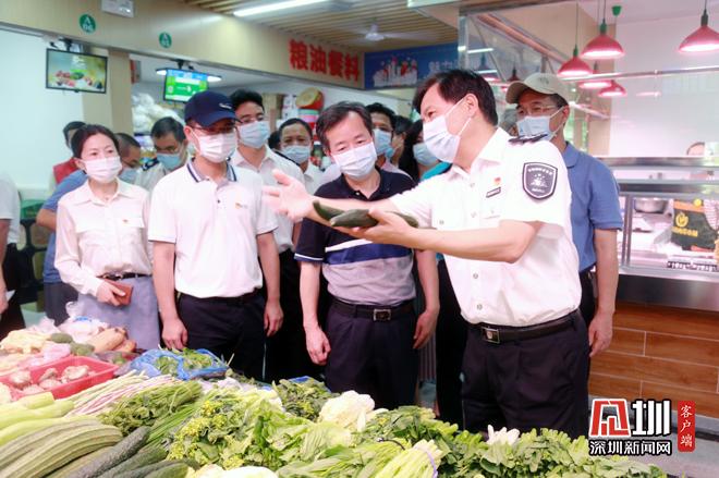 陈清一行还前往梅沙街道新福康肉菜市场,现场了解该市场的硬件设施、日常管理等方面情况。记者了解到,经改造后的新福康菜市场经营面积约1300平方米,其中门店12家、摊档34家,设有蔬菜、水果、肉类、家禽、海产品等几十个品类,可满足周边市民对农副产品的日常需求。在硬件建设上,菜市场内各品类间界限分明、生熟分离,显得整洁有序;在软件方面,所有商户统一使用由市场配置的智慧管理系统,该系统具备实时结算、动态监测、数据分析、产品溯源等功能,不仅让老百姓买得放心,也提升了商户经营效率。此外,该市场还配有食品快检室,可为群众提供蔬菜、蛋类、肉类等食用农产品快检服务。在现场扫码体验了农产品“标准化”售卖流程后,陈清对该农产品安全监管平台和成效给予了充分肯定。他指出,要始终坚持问题导向,聚焦民之所需,持续完善市场基础设施建设,进一步提升农贸市场环境面貌和管理水平,将其打造成惠及百姓的民生工程。城管部门要加大市场内外环境卫生管理力度,通过划定区域等方式,加强对菜市场周边非机动车停放的管理,切实维护好菜市场周边市容秩序;街道、市场监管部门要加强工作联动,强化督导检查,规范市场内经营秩序,为广大居民群众打造一个文明舒适的购物环境。