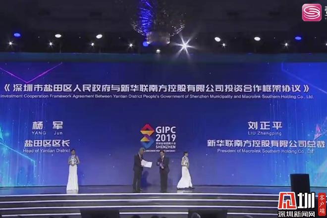 见圳客户端·深圳新闻网讯(记者 郑创彬)12月18日,2019深圳全球招商大会举行。大会以“新起点,新高度——产业引领,共享机遇”为主题,深圳市委书记王伟中化身“招商专员”,向海内外优秀企业推介深圳营商环境、产业发展战略、产业发展空间布局及相关政策。驻华使领馆代表、友好城市官员、世界500强和大型跨国企业、央企、行业领军企业代表近600多位嘉宾参加大会,现场签约128个项目,总投资超5600亿元。大会上,盐田区委副书记、区长杨军与新华联集团高级副总裁兼新华联南方控股有限公司总裁刘正平,签署了投资合作框架协议。新华联集团将投资50亿元,在盐田建设新华联光储一体化智慧能源产业园项目,全力助推“产业兴盐”。