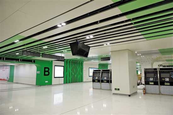 5月底,记者来到8号线海山站。这个位于盐田区政府门前的地铁站点,已经完成了内饰工程,以绿色为主基调。在负一层检票层,墙上有大片雕刻的绿树,贯穿侧面和头顶。负二层地铁上下客层,则主要以白色调为主,天花板辅以绿色条纹。工程人员介绍,该站的空调系统即将调试开通,全部工程将于年内完工,并开启运营。此外,地铁8号线一期工程采取“一站一景”的设置,乘客在每个站点内部,都能看到不同的景致。