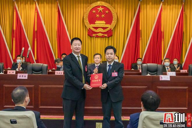 见圳客户端.深圳新闻网讯(记者 潘峰)8月13日上午,盐田区第五届人民代表大会第七次会议召开。邓飞波当选为盐田区人民政府区长,李志利当选为盐田区人大常委会副主任,区人大常委会主任梁景海向邓飞波、李志利颁发当选证书。随后,举行了庄严的宪法宣誓仪式。