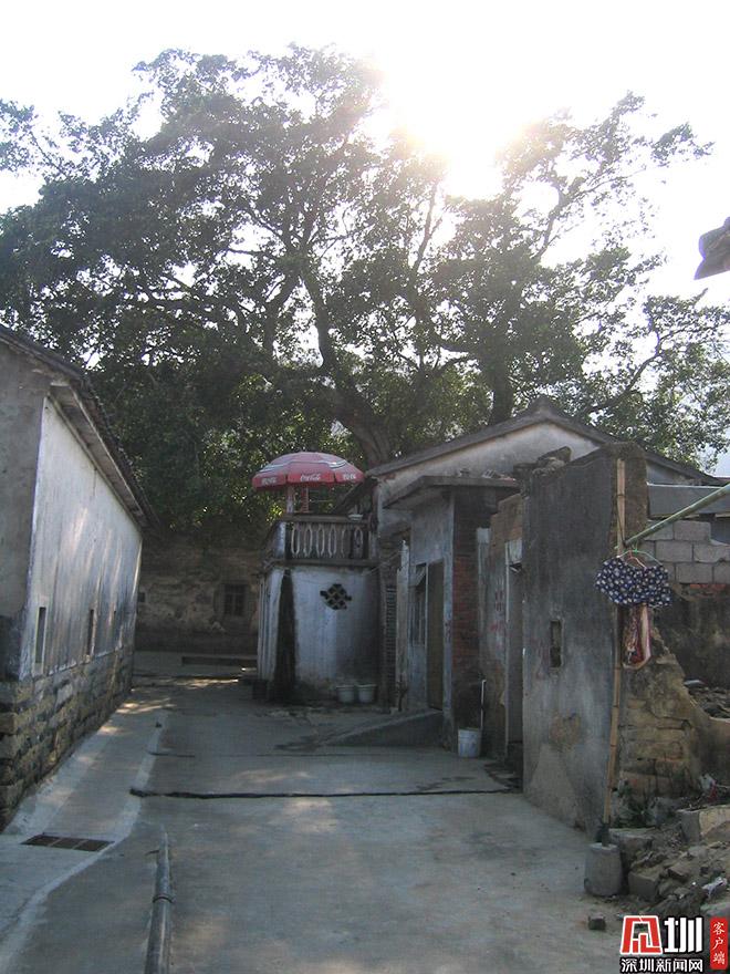 虽是客家聚落,大梅沙村却没有传统客家民居的宗祠和祖屋,村里唯一一处与民俗信仰有关的场所是村北入口的一棵老榕树和榕树下放着的各种信仰的神龛。“这棵古榕树应该有200多年历史了!”“村后面原来还有很多这样的大树,樟树、榕树、龙眼树等,占了七八亩地,以往村里开会,都在大榕树下。”在村民看来,这片古树林是能带来风调雨顺、佑护村民平安的“风水林”。