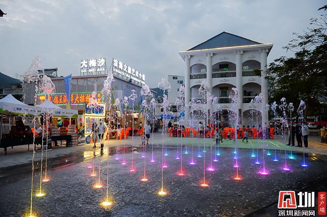 在引入市场化运作方式的同时,2019年8月,盐田区委区政府对大梅沙村占地面积约70960平方米、273栋建筑楼进行大刀阔斧地整治,全方位将该村落打造成滨海文旅艺术小镇。经过近一年的改造,原本破旧的外围商铺打造成高端大气的美食一条街,雕琢点缀村口广场的“绽放”雕塑、音乐喷泉、童趣广场、互动投影等“网红打卡点”,因地制宜将滨海特色文化融入大梅沙村,结合独具特色的商业业态,营造出滨海特色文旅氛围,全面提升大梅沙村的商业品质和文化品位。