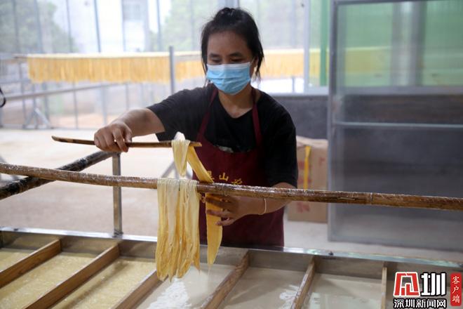 除了秀珍菇栽培基地外,腐竹厂是主固村另一个转产产业项目。陈晓光介绍,客家地区一直有制作腐竹的传统,转产之初,村里结合贫困户意愿和市场供不应求的情形,支持主固村发展腐竹产业。利用人居环境整治工作的推进,拆掉了贫困户朱华锋房屋旁的废弃养猪场,腾出一块空地。“一拆一立”既解决了“脏乱差”的环境问题,又协调了产业用地。短短3个月,一座现代化的腐竹加工厂就拔地而起,投入生产。