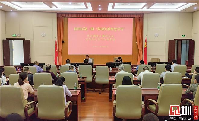 见圳客户端.深圳新闻网讯(记者 李小辉 通讯员 姚焯晖)为有效把握《民法典》对劳动关系领域的影响,进一步提升辖区劳动关系建设者的法律素养,2020年10月30日上午,盐田区举办第三期“劳动关系智慧学堂”活动,邀请深圳大学法学院副院长、教授侯玲玲为现场近百名参会人员以“民法典亮点解析以及对劳动关系工作的影响”为题进行授课。