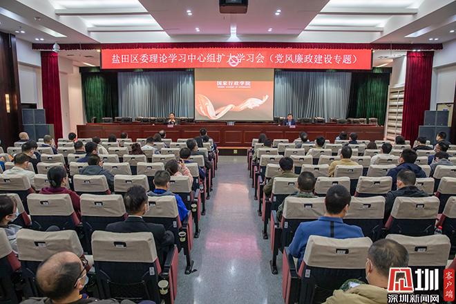 见圳客户端·深圳新闻网讯(记者 潘峰)2020年12月17日下午,盐田区召开区委理论学习中心组(扩大)学习会,邀请中央党校教授、博士生导师周文彰作《树立正确的世界观权力观事业观》讲座,专题学习党风廉政建设和反腐败斗争。盐田区委理论学习中心组成员,以及各机关单位副处级以上干部代表参加学习。