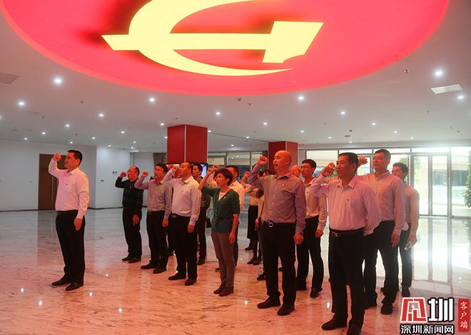“我志愿加入中国共产党,拥护党的纲领,遵守党的章程,履行党员义务……”在盐田区党群服务中心,党员们面对党旗举起右拳,庄严地重温入党誓词。庄严隆重的仪式,铿锵有力的誓词,让每一位党员干部受到了一次心灵的洗礼,增强了党员意识,强化了党性观念。