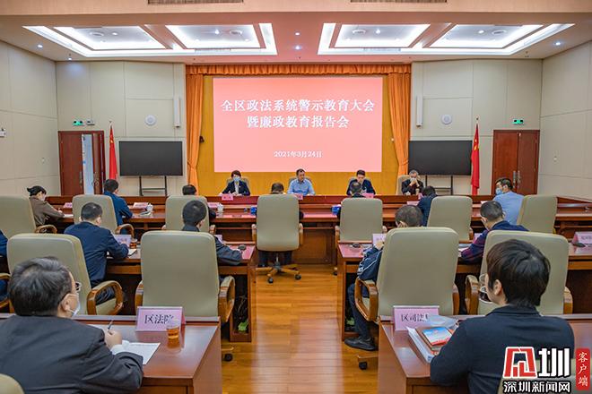 区法院院长杨爽,区检察院检察长杨剑锋,区纪委监委、区委组织部、区委宣传部分管负责人,区委政法委和区政法各部门班子成员,各街道政法委员,中英街管理局分管负责人,区委政法委全体公务员,区教育整顿专班工作人员参加会议。