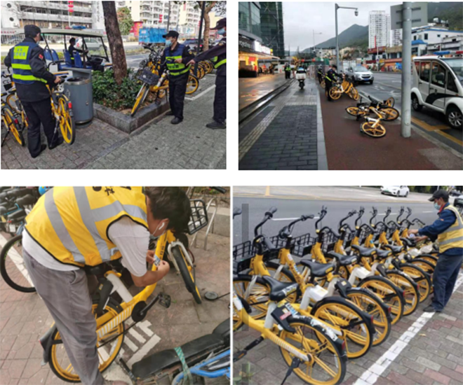 区城管和综合执法局党总支部牵头,同时出动各街道执法队力量,动员党员群众约100人,围绕“街面啄木鸟”行动具体内容,全面开展共享单车专项整治行动,在辖区重点地段、共享单车主要停放点开展“随手扶”、人行道清理、车身小广告清洁等整治工作,保证市容环境和出行环境整洁;及时处置重点区域存在的共享单车零散停放、压占道路和绿化带等现象,避免造成交通堵塞现象。