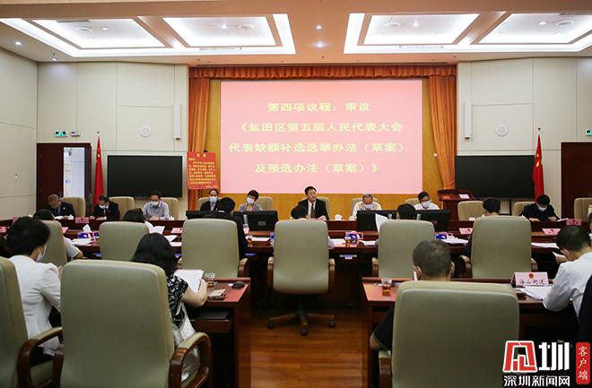 会议审议通过了盐田区人民法院《关于提请任命林健权等职务的议案》《关于补选盐田区第五届人民代表大会代表的资格审查报告》《盐田区第五届人民代表大会代表缺额补选工作方案》,以及《盐田区第五届人民代表大会代表缺额补选选举办法及预选办法》。