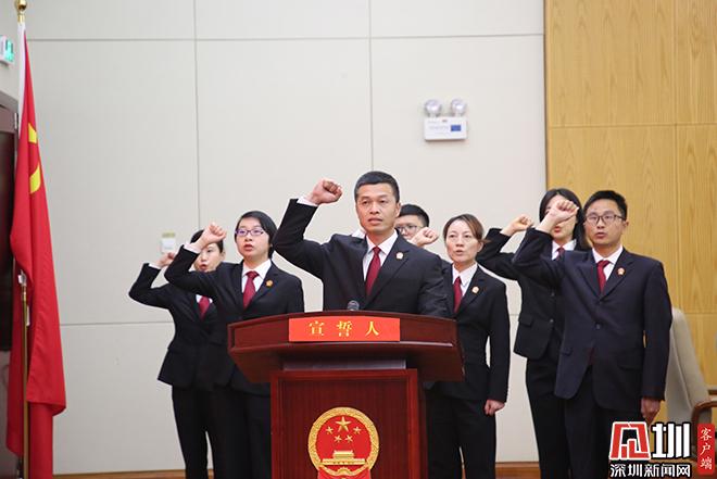 会上,梁景海为新任职盐田区人民法院有关职务的林健权等同志颁发了任命书。新任职人员进行了任职宣誓。