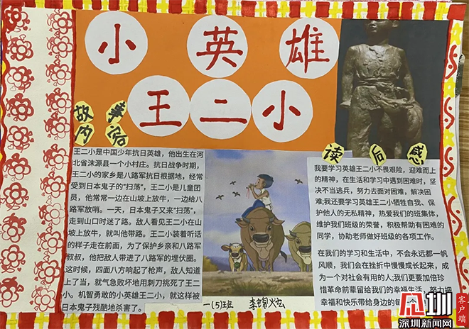 以庆祝中国共产党成立100周年为契机,一至六年级分别进行了以“致敬英雄、红色经典”为主题的剪贴报、手抄报、好书推荐卡制作。一、二年级的学生们围绕民族英雄、经典革命故事或战役等,进行了剪贴报制作;三、四年级的学生们围绕党史故事制作手抄报;五、六年级的学生们则选择了自己最喜欢的红色经典书籍内容制作好书推荐卡。少先队员们用画笔画出心中的百年故事,用文字传递红色精神。在那一份份剪贴报、手抄报、好书推荐卡中,充分展示了《青春之歌》《把一切献给党》《红岩》等一部部经典作品中饱含的深切爱党之情。