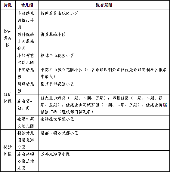 盐田区2021年秋季学期幼儿园实行按片区招生,具体安排如下。