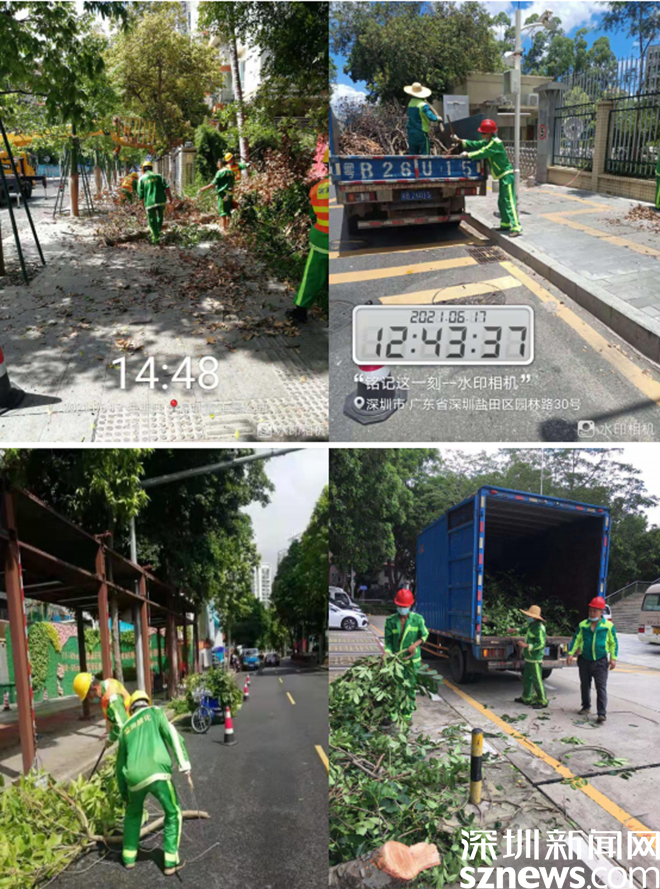 截至6月24日,盐田区各养护单位共出动136人次,共修剪了云深处、东和路、金融路等主要市政道路防台风乔木178株,清理危枝约3吨。接下来,盐田区城市管理和综合执法局将继续加大巡查力度,针对城区道路树木可能出现的安全隐患,做到早准备、早检查、早落实,确保台风来临之前既能保护绿化设施,又能保障市民出行安全。