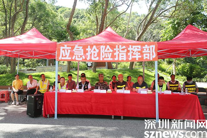 读特客户端·深圳新闻网2021年7月14日讯(记者 潘峰 实习生 傅浩)7月14日上午,盐田区国防动员委员会与深圳市交通运输局盐田管理局联合组织开展道路边坡水毁塌方抢险应急演练,模拟因大雨突袭,盐三线K17+600处边坡发生水毁塌方,有大量泥土堵塞在道路上,导致车辆无法通行,须紧急抢险的场景。区委常委、区人武部部长王贵喜参加演练活动。