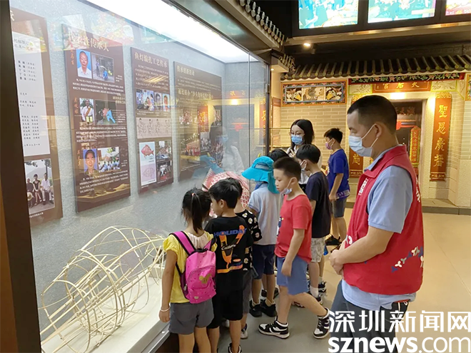 非物质文化遗产被誉为历史文化的活化石,民族记忆的背影,那些古老的传说无不蕴藏着中华民族珍贵的文化基因。非物质文化遗产体验营的第一站是参观中英街鱼灯舞民俗博物馆。在讲解员的讲解下,深港青少年们感受着来自数百年前的文化风采,了解鱼灯舞的历史渊源,观察鱼灯的内部结构。