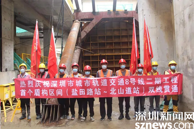 读特客户端•深圳新闻网2021年8月13日讯(记者 邓雪婷 通讯员 王雯 张煜)8月11日,地铁8号线二期盐北区间(即“盐田路站-北山道站”)右线盾构机刀盘破土而出,顺利抵达接收井。至此,盐北区间双线顺利贯通,这也是地铁8号线二期全线首个双线贯通的区间。