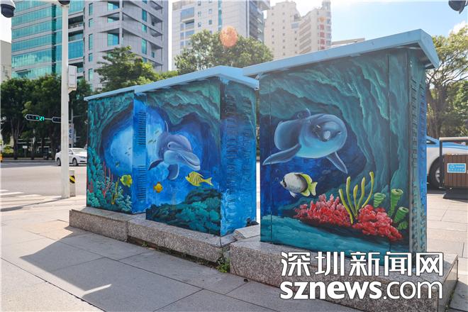 “重新涂装后的城市家具,美化了道路环境,提升了品味,营造了创建文明城市的浓厚氛围。”盐田区城市管理和综合执法局市容科科长刘学民介绍,作为城市品质提升工作重点工作之一,今年年初,该局将壹海城周边的城市家具品质提升列为试点工作,对沿街老旧电箱进行了彩绘提升。在箱柜彩绘设计中,注重绘画与周边环境相结合,通过巧妙融入海洋生物、山水、植物等元素,充分彰显滨海盐田特色。