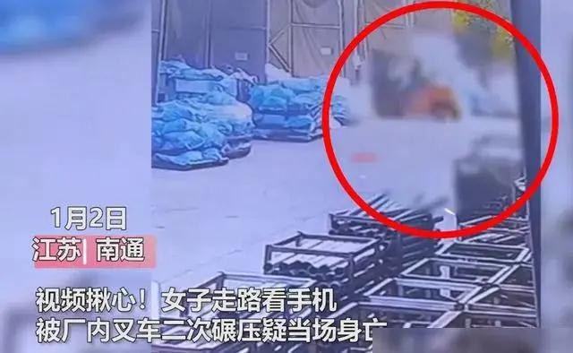 2021年1月2日,江苏省南通市某厂区内发生了一起悲剧事件,现场一辆作业的叉车和一名路过的女子发生碰撞,导致女子被碾压两次,不幸身亡。